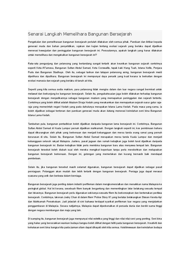 Contoh Karangan Usaha Usaha Memelihara Dan Memullihara Bangunan Bersejarah Pdf