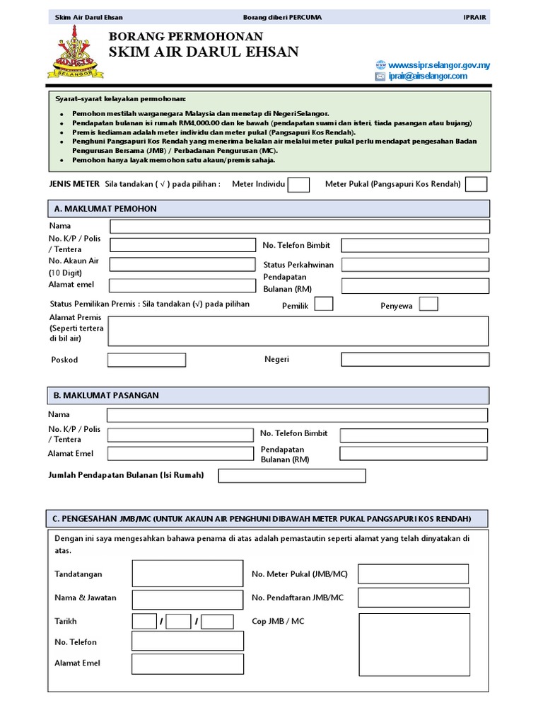 Borang Permohonan Skim Air Darul Ehsan Pdf